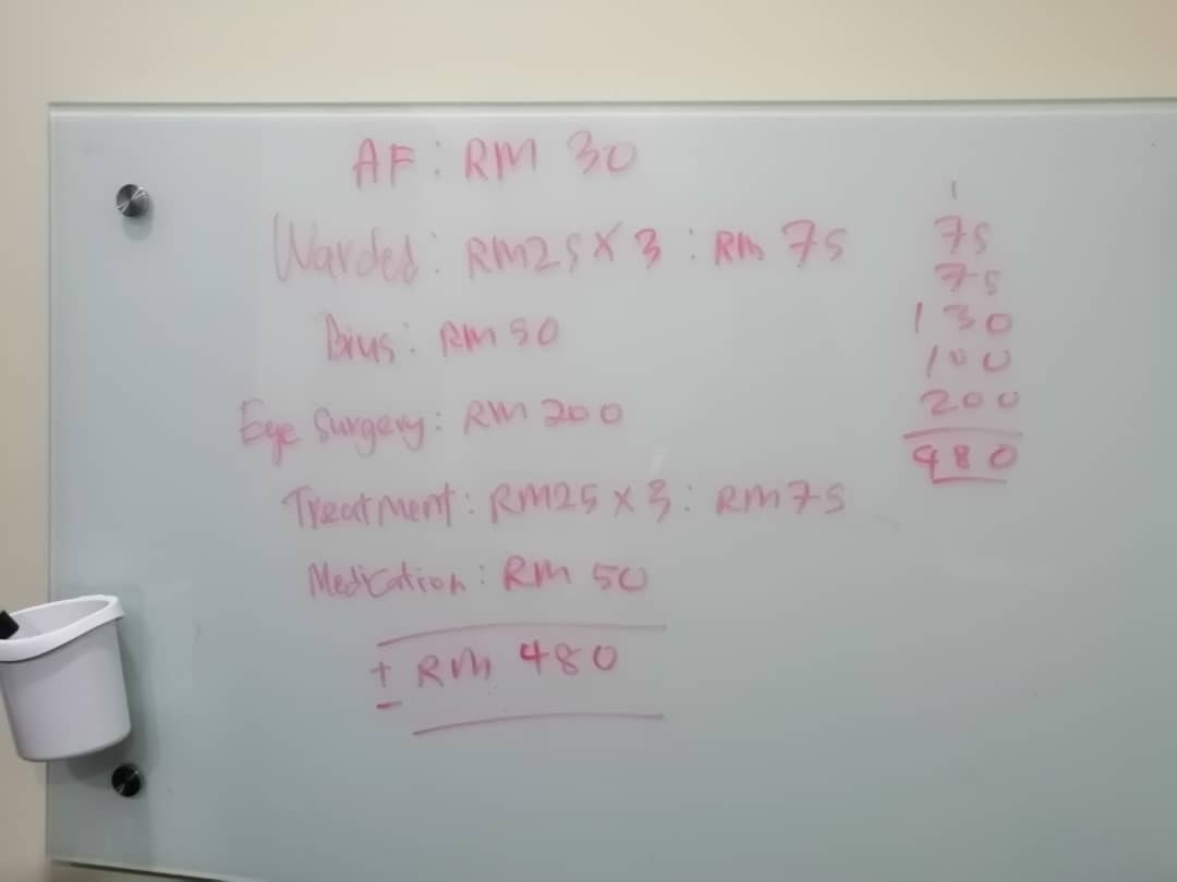 但野猫的药费却要RM480!他们被迫借钱还医药费,但还是不够。
