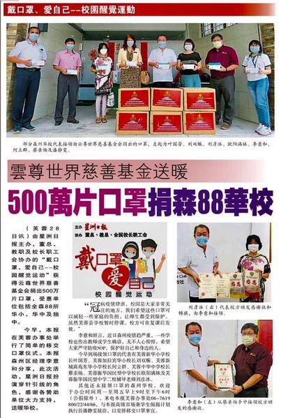 云尊世界慈善基金会所捐赠的口罩陆续送往全国各地的学校。 保护国家未来栋梁是我们的责任,我们责无旁贷、义不容辞!❤️