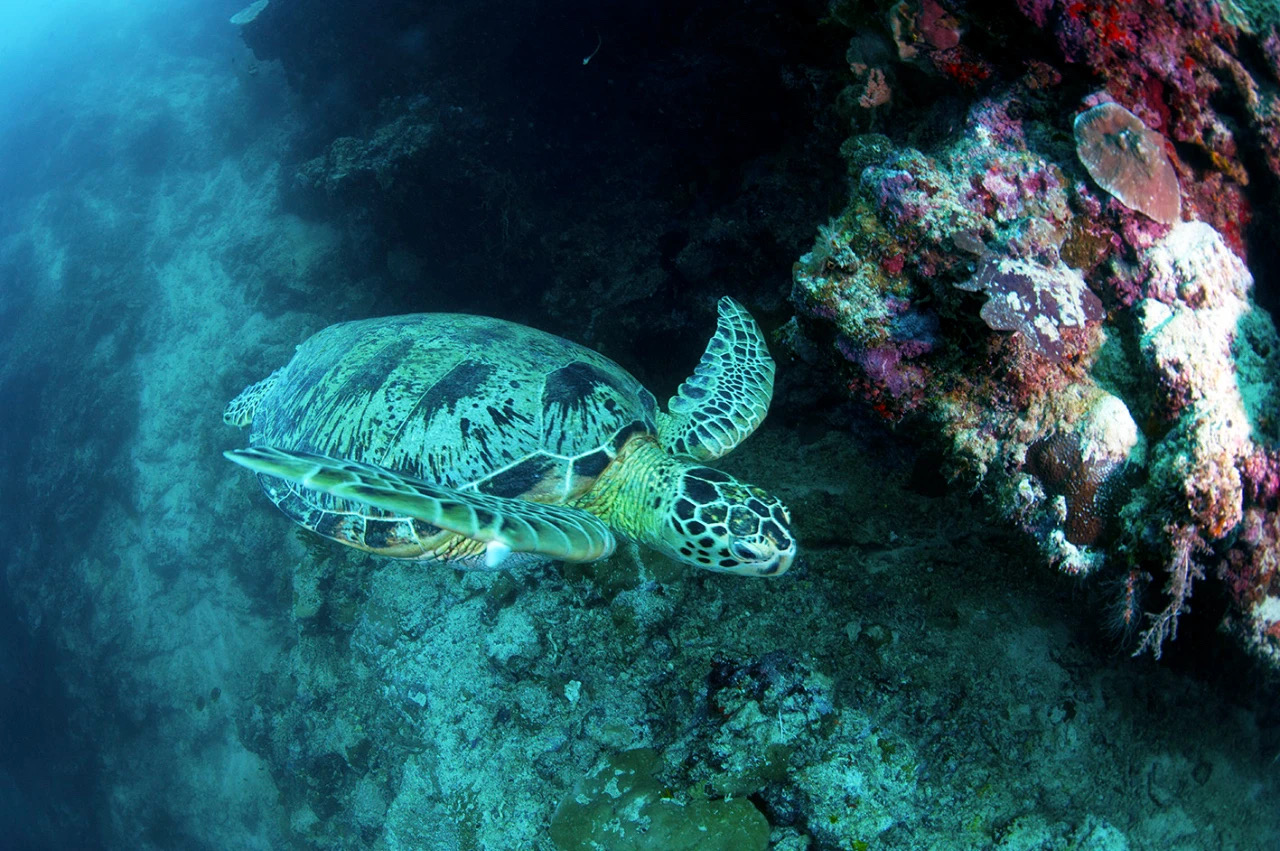 西巴丹岛是世界海龟之都。它是绿海龟和玳瑁海龟的重要繁殖地,它们的甲壳长可达1米,体重可超过140公斤。西巴丹岛丰富多样的海洋生物还包括3000多种鱼类和数百种珊瑚。除了海龟,成群的梭鱼、凸头鹦嘴鱼、蝠鲼、大眼弓鳍鱼和锤头鲨也经常在那里见到。