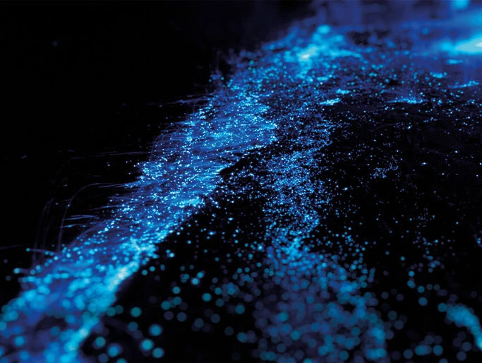 这种“蓝色眼泪”是由一种特殊藻类形成的。在它活动的时候,蓝色发光的景象将照亮该地区,并把海水变成霓虹灯蓝色,并冲上海岸。