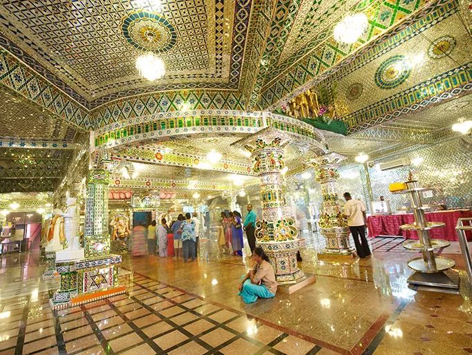 兴都庙几乎每一个表面,从柱子和墙壁到门和天花板,都覆盖着各种彩色玻璃,营造出迷人的氛围。成套的枝形吊灯也装饰了寺庙的天花板,使得寺庙周围变得非常精致和优雅。