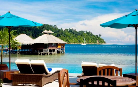 Gayana Marine Resort 静卧在马来西亚亚庇罗洲珊瑚礁岛屿上茂密的丛林之中。其拥有45间独立的建于水上的热带风情别墅,在这里随时可以捕捉到京那巴鲁天水和一的景色。