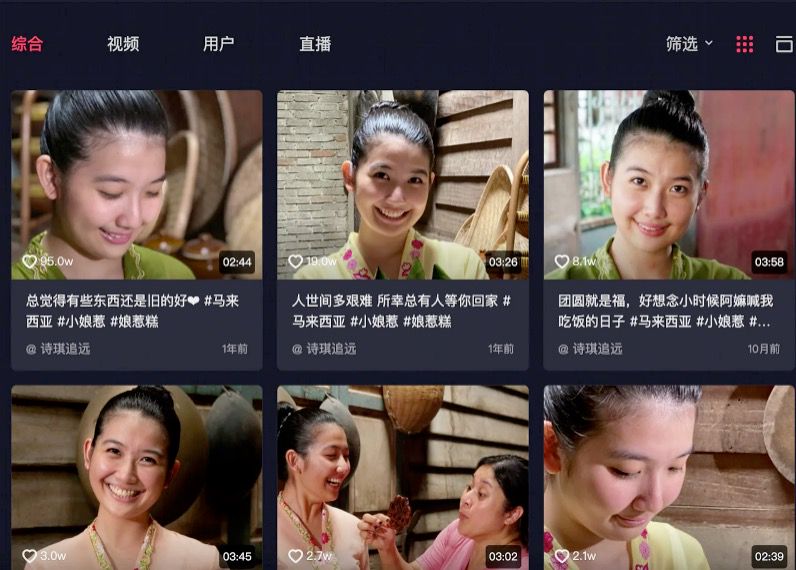 诗琪追远指想宣扬大马娘惹文化,因此影片以古法制作娘惹料理,身穿传统服装的她自然疗愈的风格甚有中国网红李子柒的影子,并且同样有老人亮相,而视频中与她一起下厨的阿嬷,现实中是她表哥的外婆。