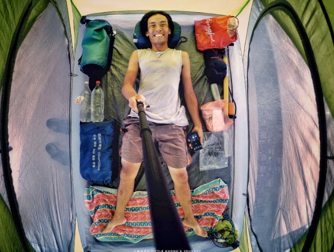 “我仅有第一次流浪旅行时,用睡袋露宿,之后都购买帐篷取代,原因是大马的天气不适合睡在睡袋里,真的很热。”
