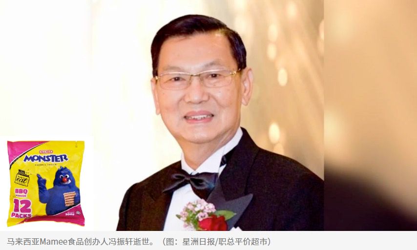 马来西亚知名食品公司妈咪大宝达(Mamee Double Decker)的创办人冯振轩逝世,享寿96岁。