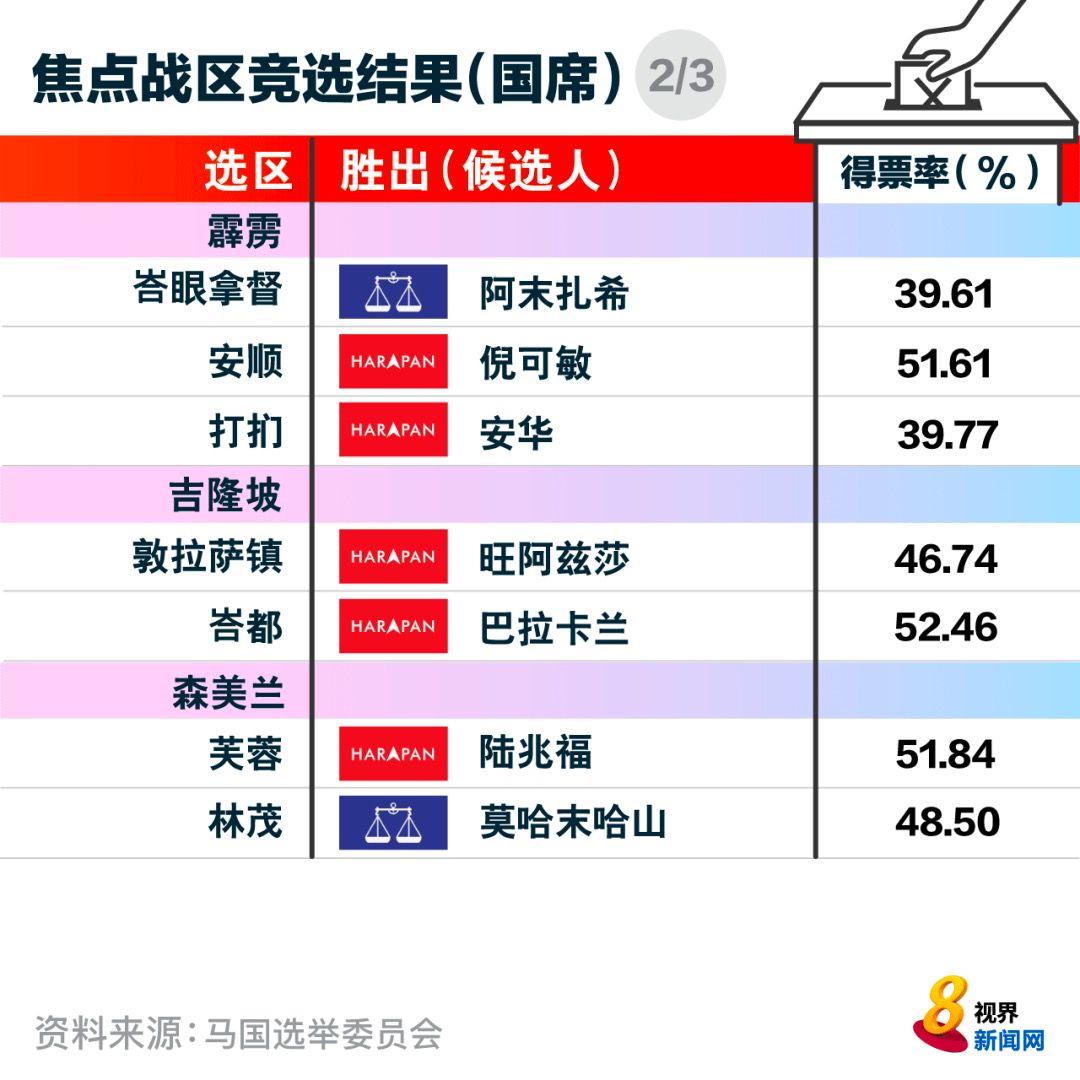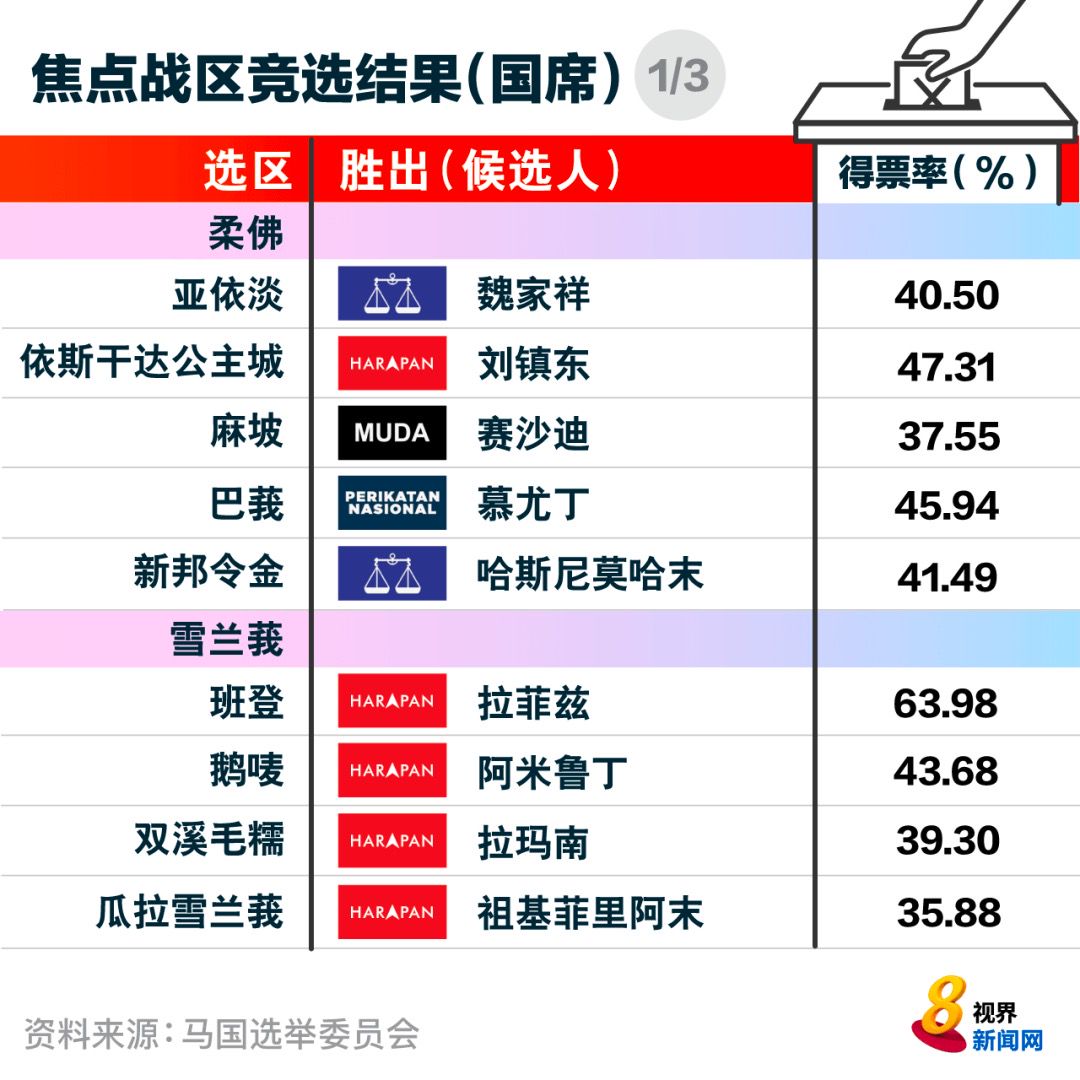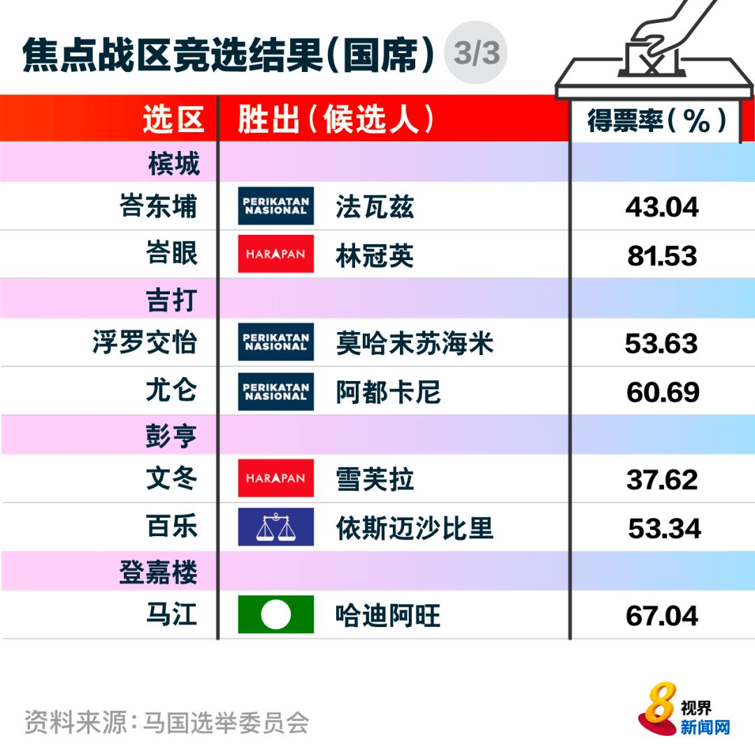 下来一起看各州属国会议席选举的成绩。